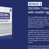✅ 250,000 T-shirt Designs: From quirky to classic, unleash your creativity and tap into the thriving market of custom t-shirts. Edit, rebrand, and sell them as your own!